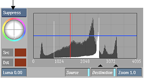 - Use the Suppress trackball to remove a range of colour, such as a colour cast that pervades the entire image.