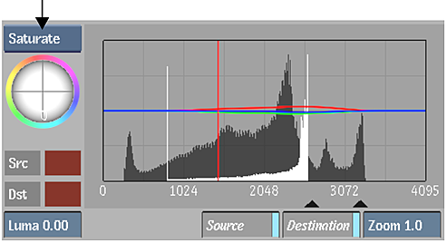 - Drag right in the Saturation field while monitoring the 2D or 3D vectorscope and the image.
