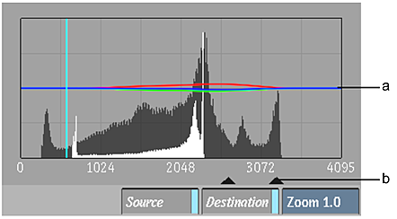 | Destination | Show a histogram of the luma values in the result clip. The destination colour values are obtained from the current frame. |