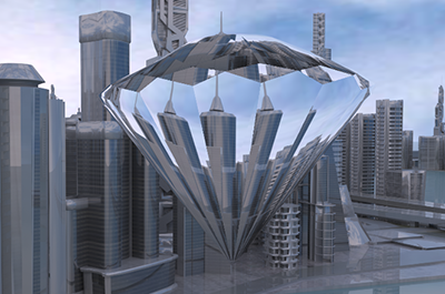 The geometry now refracts its background using an index of refraction determined by the Refraction map.