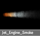 Jet_Engine_Smoke Use Number, Lifetime, Size, and Speed settings to characterize the smoke. Use the Magnitude setting of the gravity manipulator to set the smoke’s motion. |