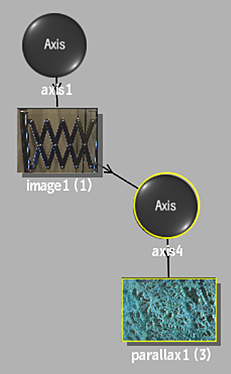 The parallax object is added to the schematic with its own parent axis. The new axis is the child of the selected surface or geometry. In Schematic view, the number in brackets next to the name of the Parallax node indicates the media used for the parallax.