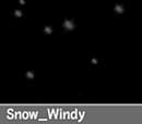 Snow_Windy Use Number, Size, and Speed for characterizing the snow. Try with wind’s Magnitude and axis animation to mimic the wind. |