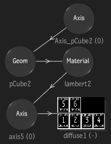 The Action schematic with the a cube and the UDIM texture.