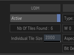 The UDIM Active option detects UDIM files and creates a single UDIM file in the browser. It indicates the number of tiles part of the UDIM texture.