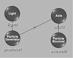 Note: If the particle bouncer is not parented correctly, unparent the particle bouncer and make the axis or light source added in the last step its parent.
