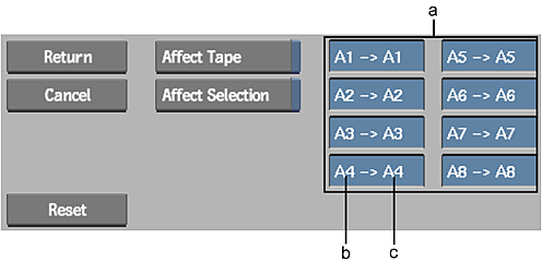 (a) Audio Patch boxes (b) Source audio track (c) Destination audio track