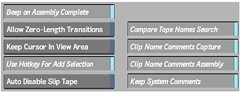 The Assembly Options menu contains options that you can set that affect EDL assembly.