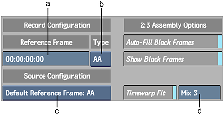 (a) Reference Frame field (b) Reference Frame Type box (c) Default Reference Frame box (d) Mix field