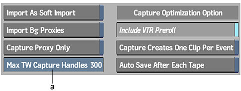- Opens the Auto-Capture menu where you capture media from a VTR using an EDL.