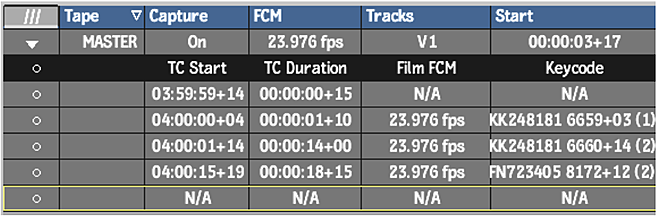 As well, each tape's entry can be expanded in Tape List view to show keycode and 2:3 pulldown information associated with the source timecode.