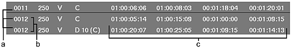- The frame code mode for the tape. If the frame code mode is 29.97, you can drag over the item in this column to switch between DF/NDF modes.
