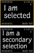 Primary/secondary selection. A yellow border is displayed on the primary selection and a grey border on the secondary selection(s). The last selected clip becomes the primary selection. |