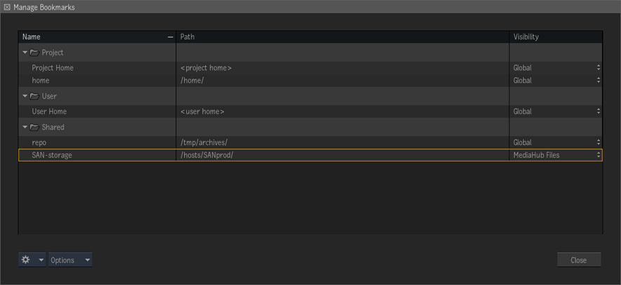 - Bookmarks set to MediaHub Files, MediaHub Projects, or MediaHub Archives are only available when you're in the associated MediaHub browsers.