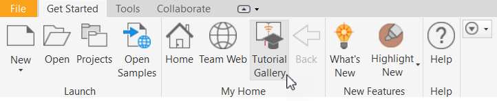 You can access the tutorials by clicking the Tutorial Gallery in the Get Started tab, My Home panel on the ribbon.