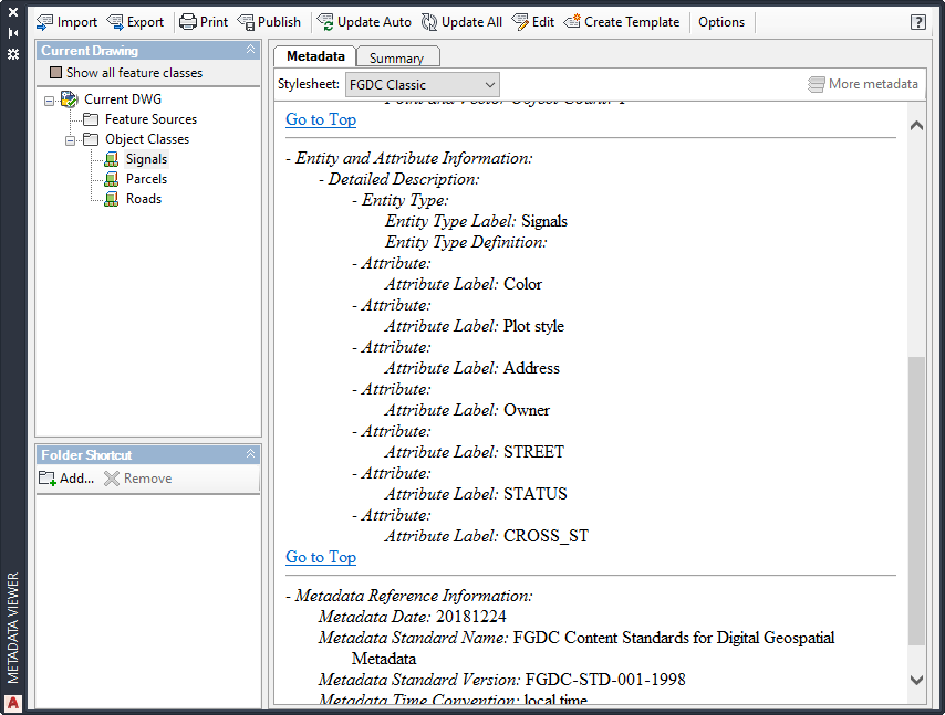 If a drawing contains classified objects, its , metadata is automatically generated and displayed when you open the Metadata Viewer the first time.