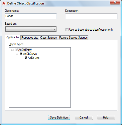For example, to be able to change the layer, linetype, or color for all members of the Roads class as a group, select those properties. You can set default values, where appropriate. For example, you can assign all members of the Roads class to a Roads layer.