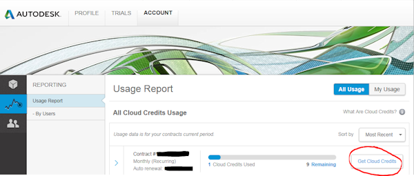 All products and services purchased on the same contract pool their cloud credits together. You can purchase more credits independently, although you must be careful to purchase them on the relevant contract. Some contracts allow an unlimited number of users access to cloud services. For general information about Autodesk cloud credits, see the Cloud Credits FAQs.