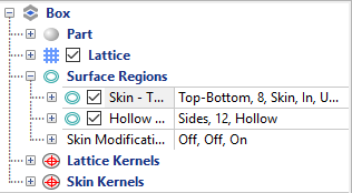 In the steps below, two surface regions are created. The first surface region creates a skin for the top and bottom surfaces of the box. The second surface region creates a hollow region for the sides of the box.