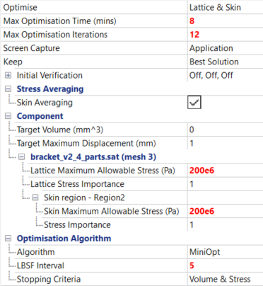 As optimization progresses, you can see changes in the Volume Reduction Coefficient in the Properties Panel, on the Component tab.