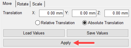 Absolute Translation, and then set Translation values for X, Y, and Z all to 0.00.