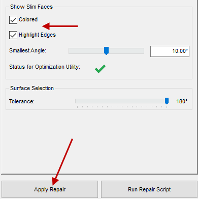 Optimization Utility launches, and loads the repaired part.