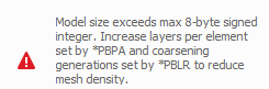 This error indicates that model size creates a matrix value which exceeds the largest number which can be specified suing an 8 byte signed integer. Reduce the mesh density in the