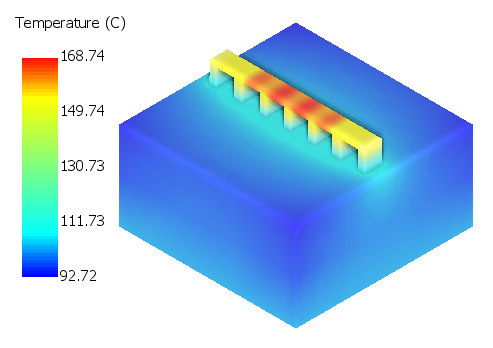 The figures below show three temperature results produced whenever a PRM file containing lack of fusion and/or hot spot information is used for a thermal or thermo-mechanical simulation. For more information on hot spot and lack of fusion settings, see