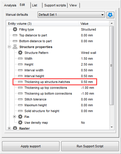 0.50. This will create support structure walls approximately 2-3 bead widths wide. Click
