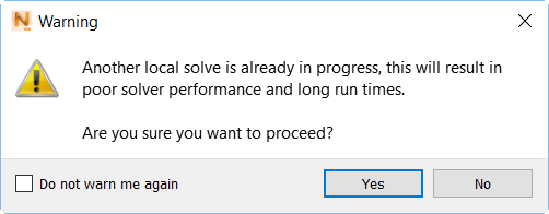 If you start a local simulation or PRM generation when another job is already running, the following warning appears: