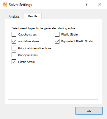 On the Results tab of Solver Settings, select the desired simulation results. Note that the default setting has none of these selected.