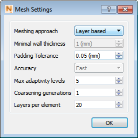 Note that the outside wall of the part has a width of one voxel. As a general rule choose mesh settings that create at least 2 elements through the thinnest feature of interest, so that the part can distort freely, without artificial stiffening.