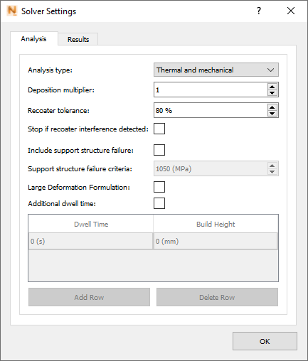 Note that Deposition multiplier has a default value of 1. This means that the simulation will account for only the part or parts on the build plate. We will first solve the simulation with this setting.