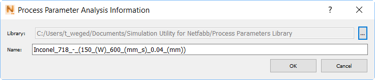 If a new material is ever required, it can be added temporarily in this dialog, using the Material > As-printed menu, or permanently by creating a new material in the Materials Library. PRM files are encoded with the material properties used to generate them. For this example, choose the Inconel 718 properties included with the software.