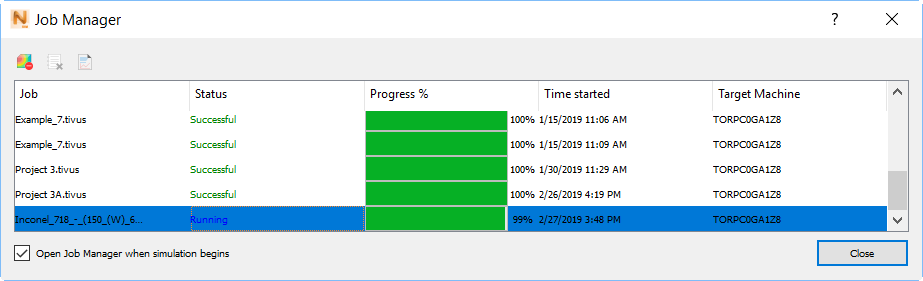 Choose a descriptive name that will identify the PRM file for future use. When the OK button is pressed, the simulation starts running, and typically the Job Manager opens to show the job progress. Because this process could take several hours to complete, you may want to cancel the solve.