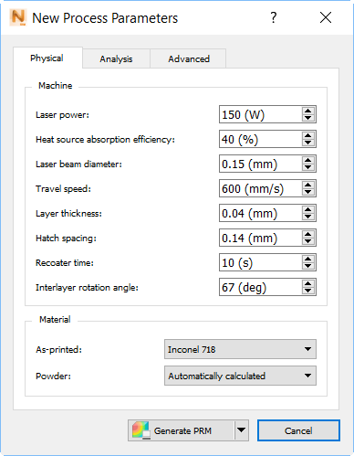 Depending on system resources, the time required to generate a PRM file can vary widely. However, this process needs to be completed only once for each combination of material and processing parameters.