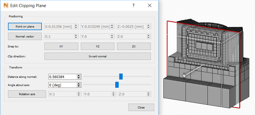 Distance along normal slider to move the plane along the X axis. If you want to slide the plane along the Y axis, select Snap to ZX.