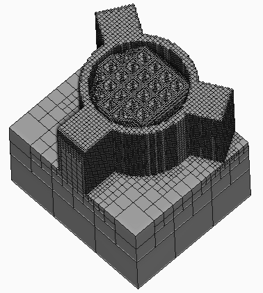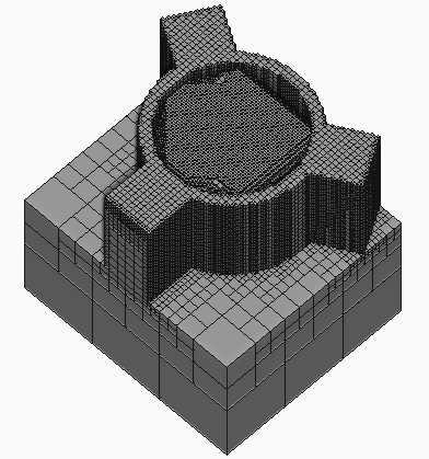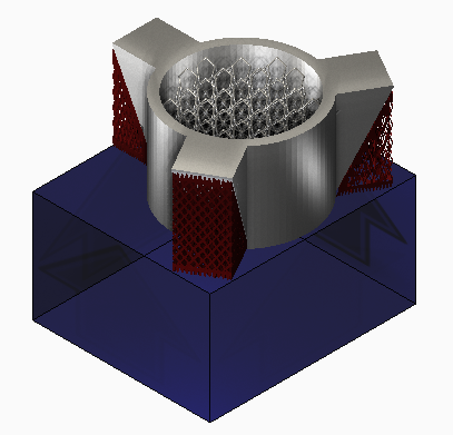 Note the dimpled top of the lattice part mesh inside the hole of the spoked cylinder.