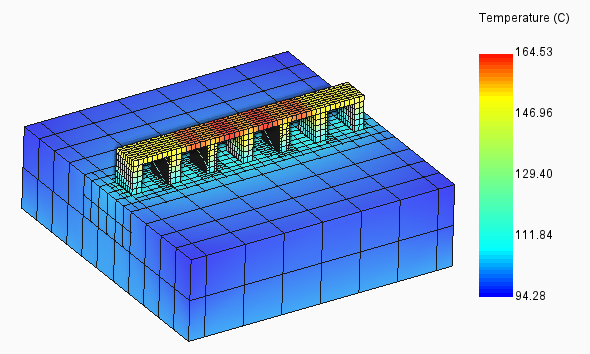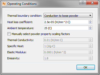 By default, the thermal boundary condition is a static uniform heat flux on the surfaces of the component and build plate. For components that are closely packed together or have hollow walls or similar features where significant heat can be transferred through the powder, the model accuracy can be improved by modeling the powder directly.