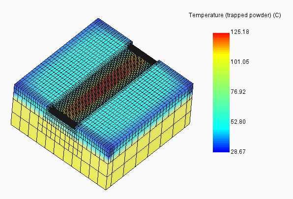 Temperature (trapped powder) results, to observe the effect of including powder elements during processing.