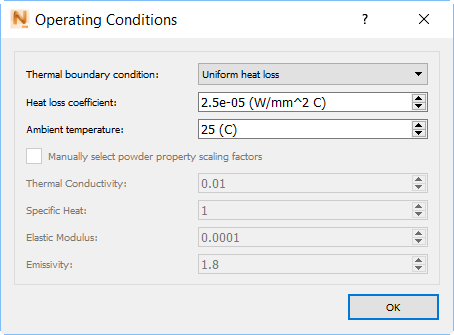 Operating Conditions dialog, choose the ambient temperature and thermal boundary conditions during processing.