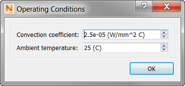 Operating Conditions dialog, choose the ambient temperature and global convection coefficient during processing.