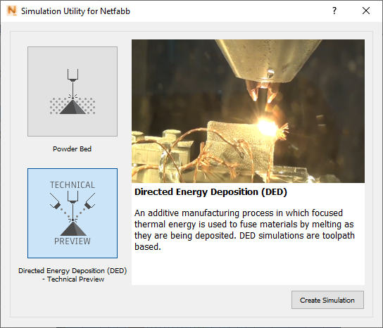 Note: Simulation Utility LT cannot run directed energy deposition (DED) simulations. These require the full