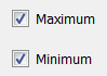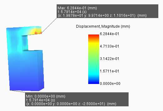 check boxes to identify and label the points with maximum and minimum values of the displayed attribute. The figure below shows an example for displacement.