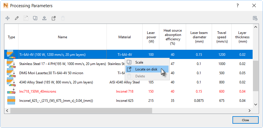 – Edit the selected PRM file. This allows for the creation of new PRM files based upon existing or failed PRM simulations. Choosing Edit will import all the Process Parameters, Material Properties, and Simulation Settings from the original PRM creation.