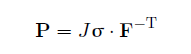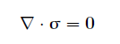 σ equilibrium equation, when the current spacial location of the part x in a deformed state may vary significantly from the undeformed reference configuration X state, (see Reference 3) is written as