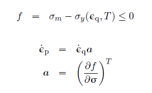 f is the yield function, σm is Mises' stress, σy yield stress, εq is the equivalent plastic strain, andα is the flow vector.