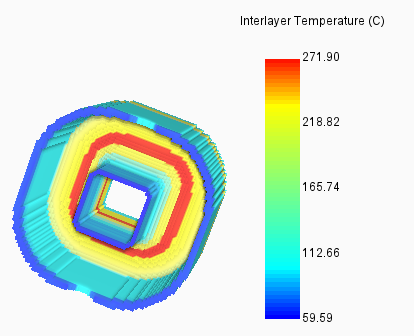 Best practices - To determine what interlayer temperatures are necessary it is suggested that the part level geometry or geometries that are of interest for that combination of processing conditions are simulated first using a standard stress and distortion PRM and choosing the Thermal only analysis type on the Analysis tab of the Solver Settings dialog. Determine from the simulation(s) the peak temperatures that may be experienced. This should be used for the upper interlayer temperatures, rounded up to the next 100° C. The lowest temperature should be set to the ambient temperature, typically 25º C. To determine what other temperatures should be used, plot the thermal properties of the material in question with respect to temperature. Add additional interlayer temperatures where observable non-linearities occur.