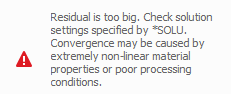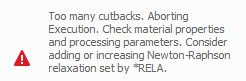 If the residual during any increment exceeds the maximum residual, which is by default 1E20, the simulation will stop. This is typically due to severe non-linearties in the material properties, or due to excessively high energy inputs. Check these values and attempt the simulation again.