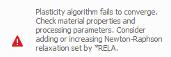 If the Plasticity algorithm fails to converge, the above error is issued. Common causes for this error along with possible solutions include: